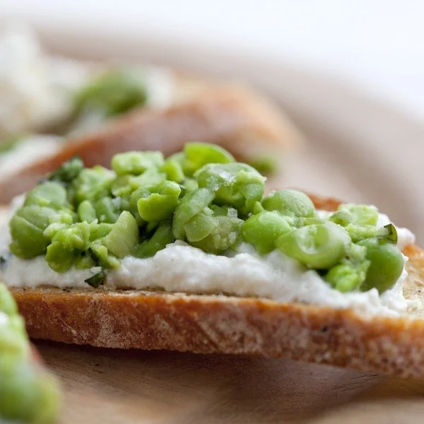 Broad Bean, Pea and Ricotta Crostini with Mint